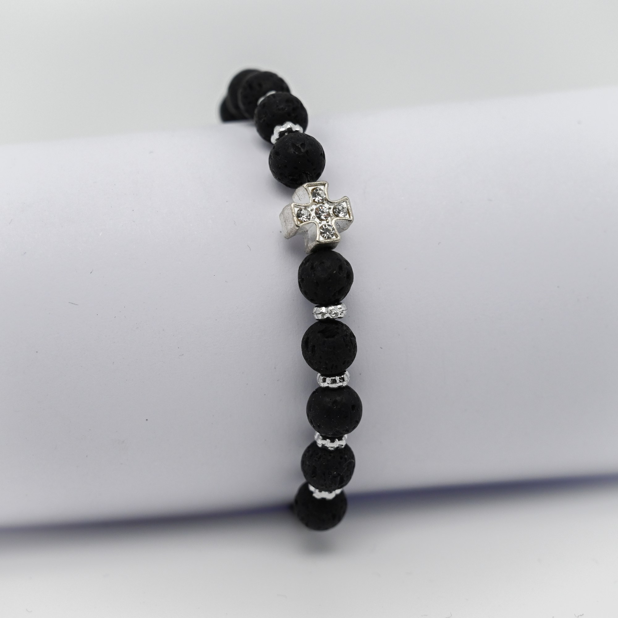 Rosenkranzarmband - Lava-Stein & Kreuz