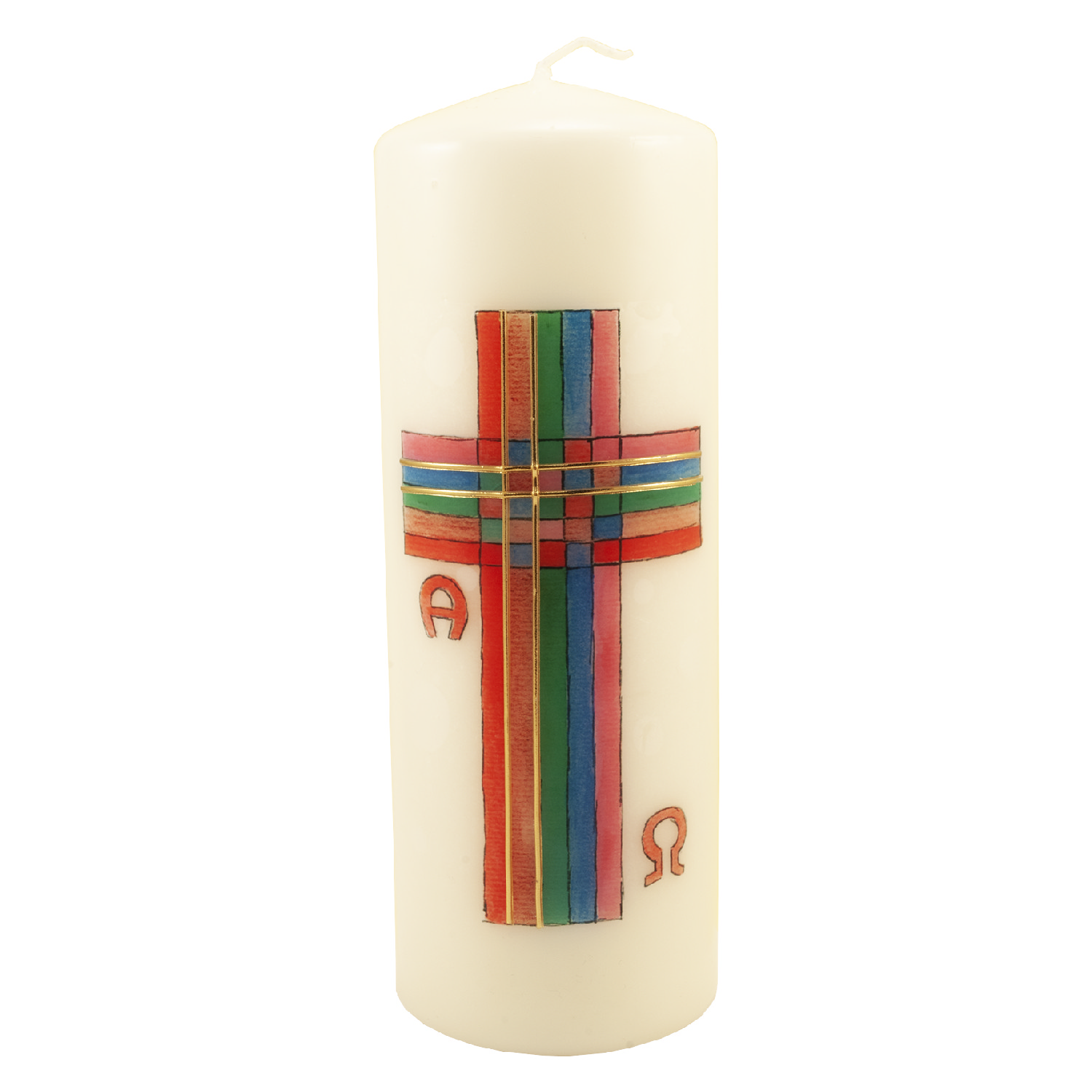 Produktinformationen "Osterkerze - Buntes Kreuz & Streifen"
