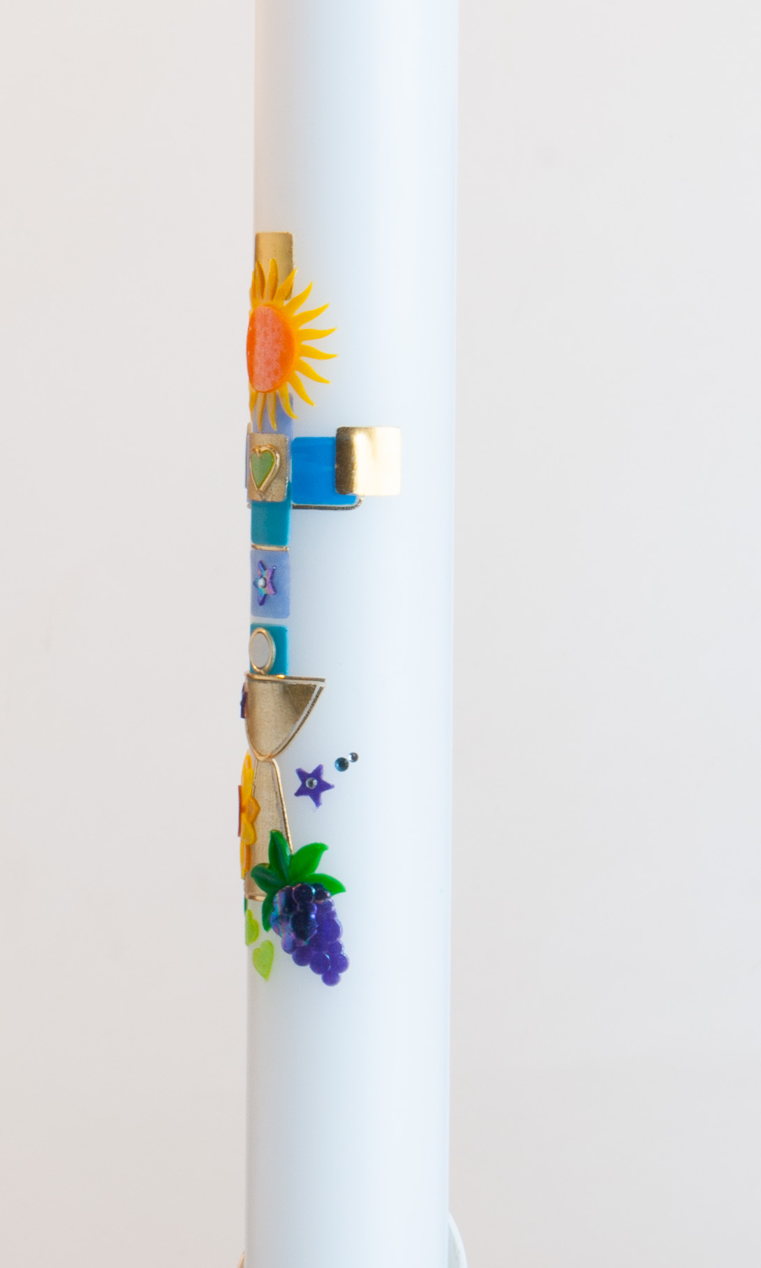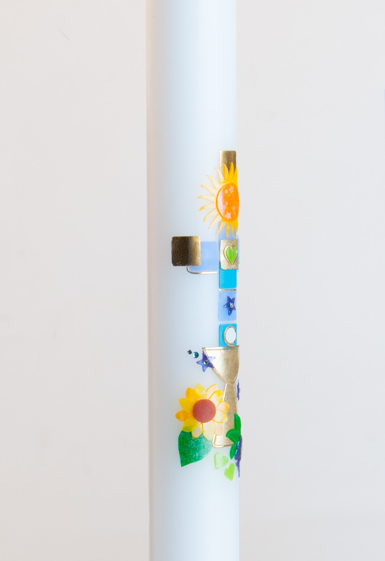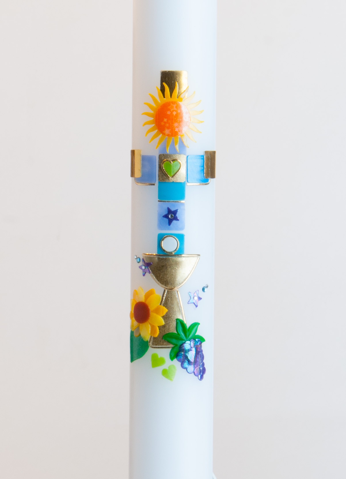Kommunionkerze - Sonne, Farbiges Kreuz und Goldener Kelch