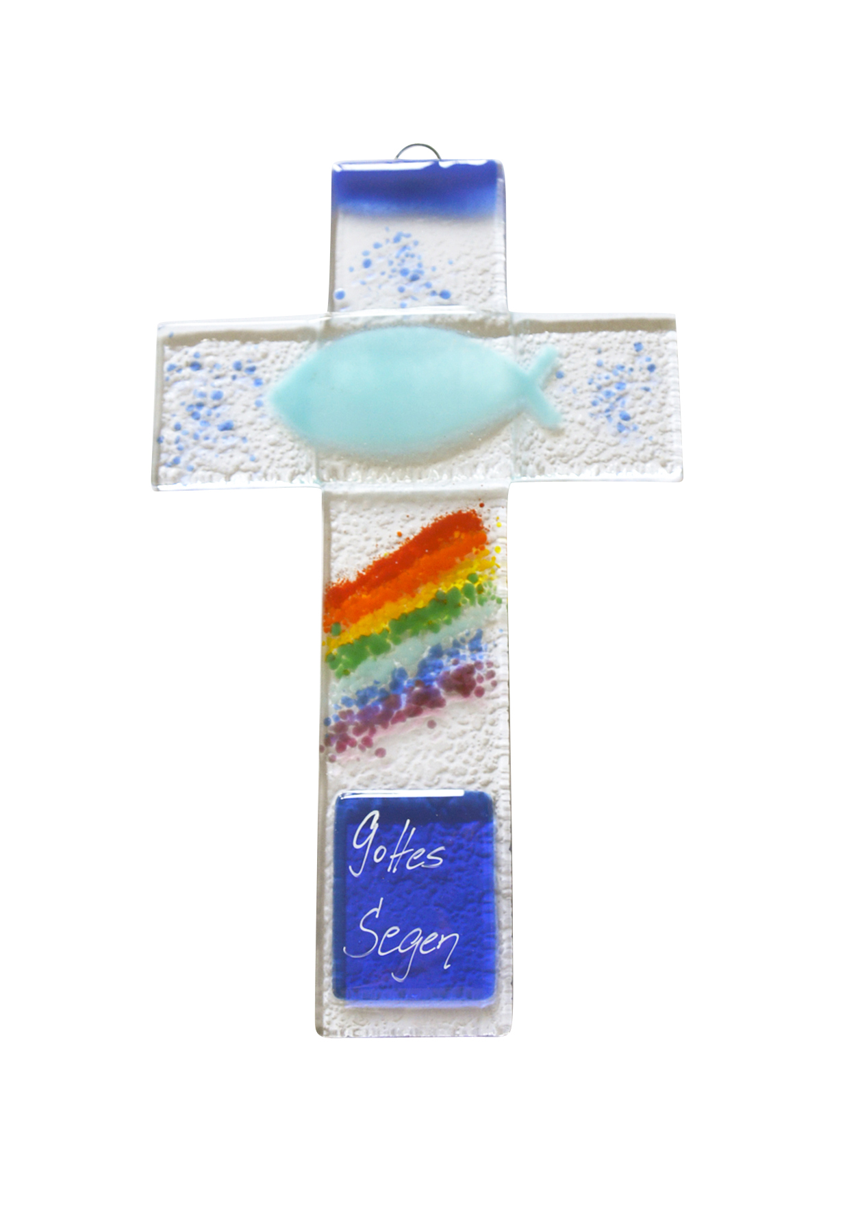 Glas-Kreuz - Fisch & Regenbogen