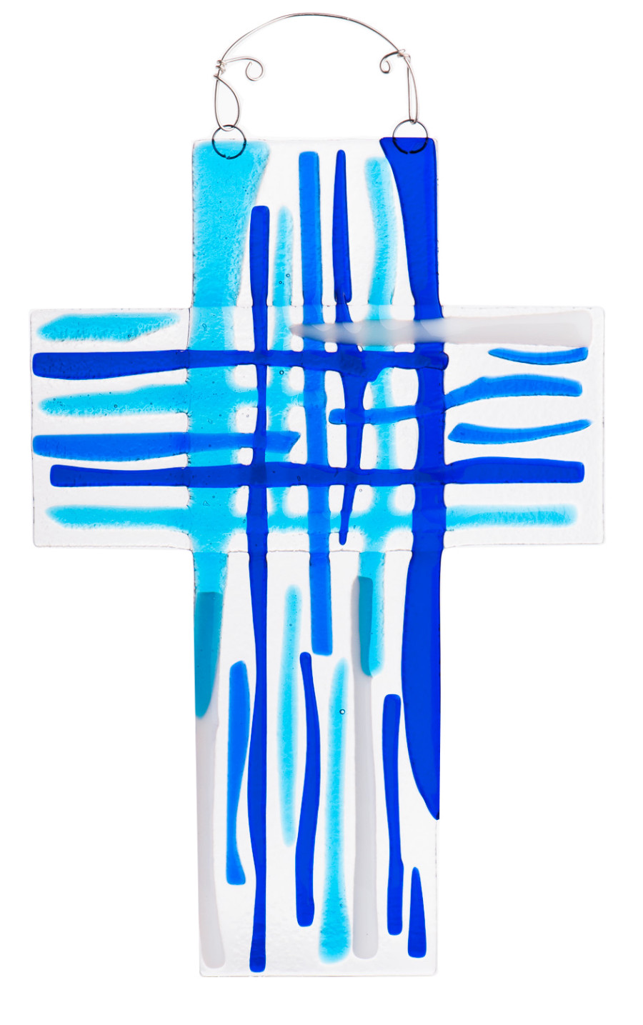 Produktinformationen "Glaskreuz - Streifen & Blautöne"