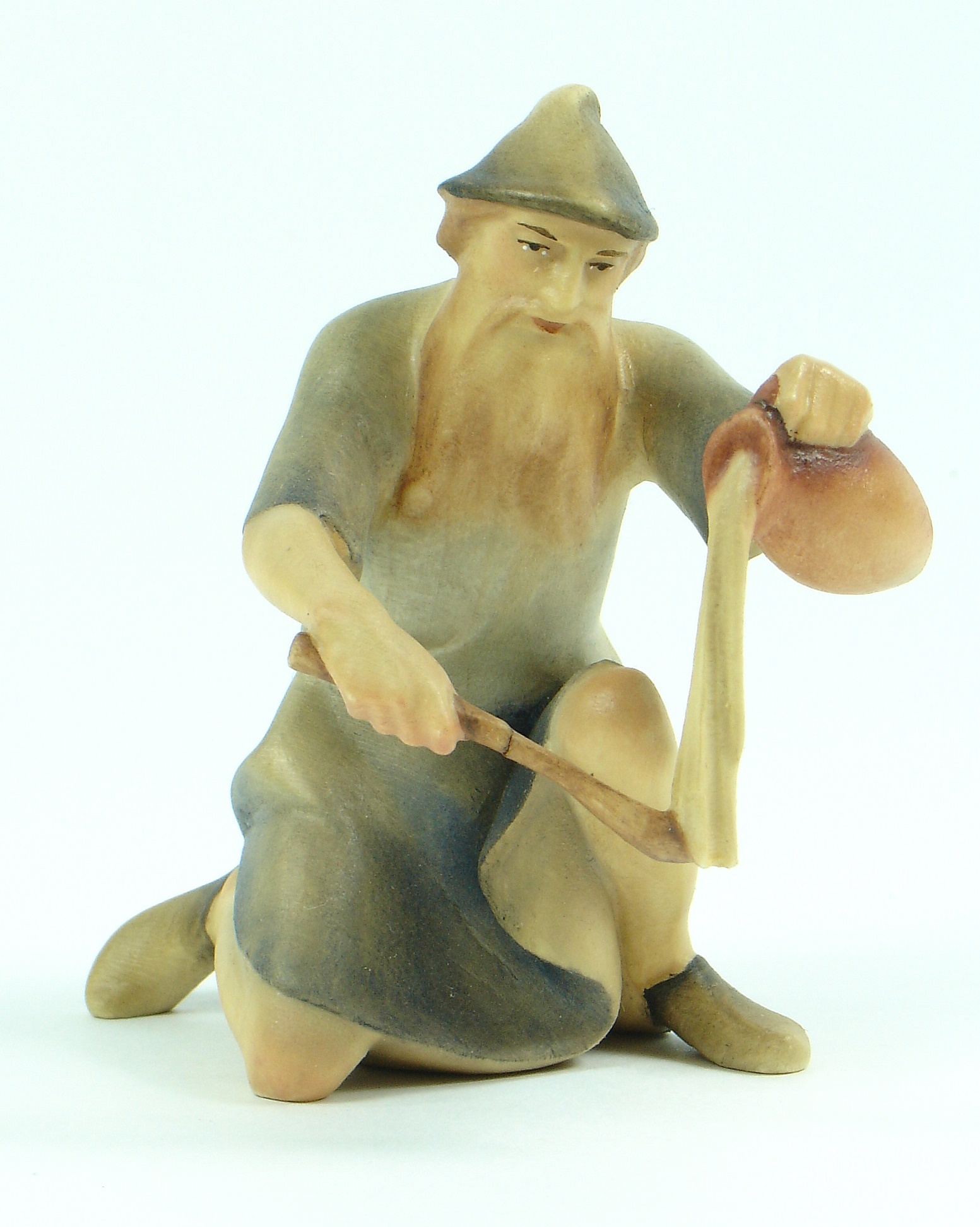 - Figur: Heiland-Krippe - Alter Hirte kniend kochend