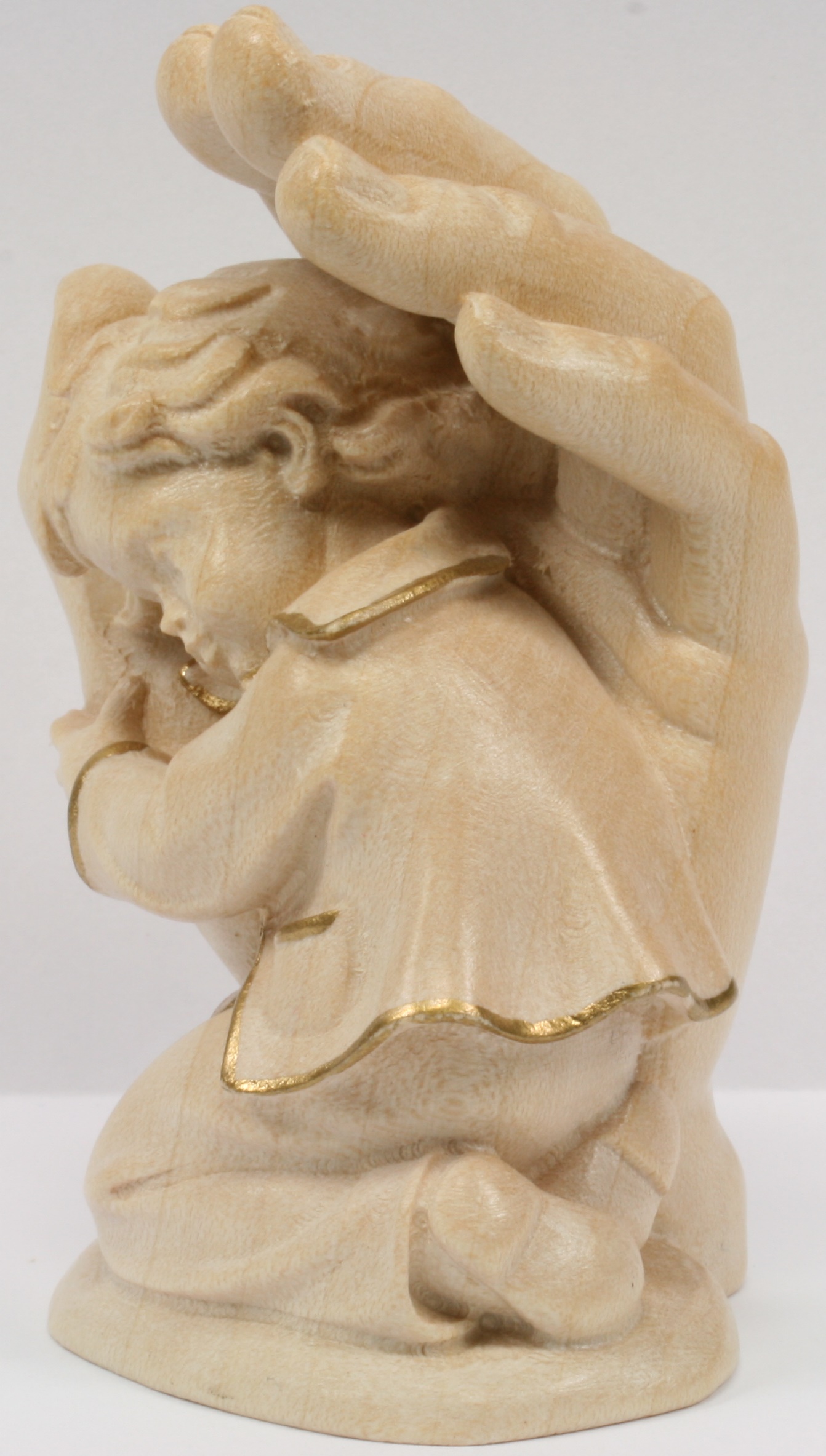 Holzfigur - Kind in Händen & Goldrand