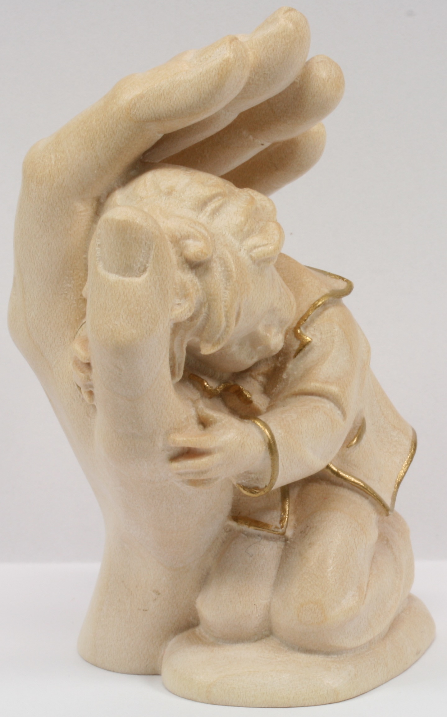 Produktinformationen "Holzfigur - Kind in Händen & Goldrand"