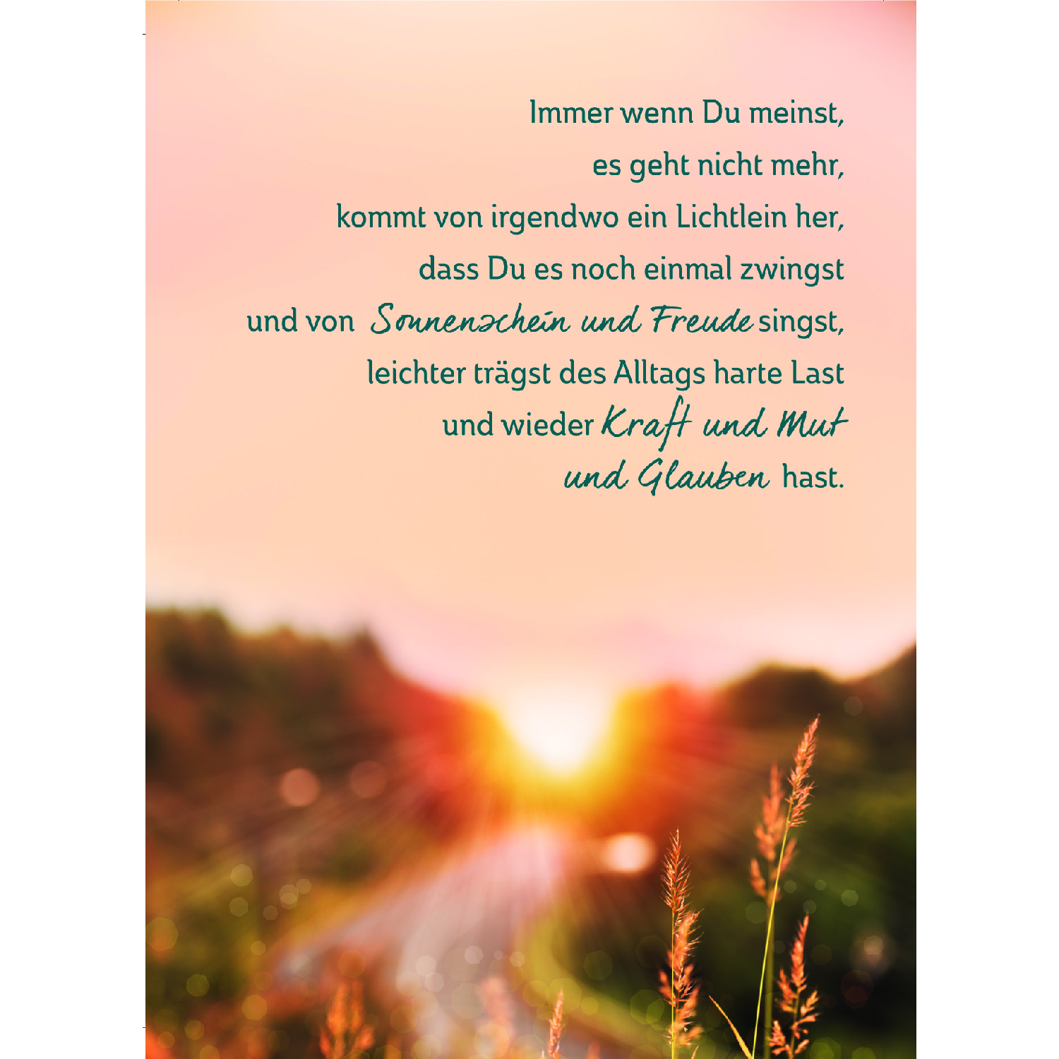 - Immer wenn Du meinst, es geht nicht mehr, kommt von irgendwo ein Lichtlein her, dass Du es noch einmal zwingst und von Sonnenschein und Freude singst, leichter trägst des Alltags harte Last und wieder Kraft und Mut und Glauben hast.