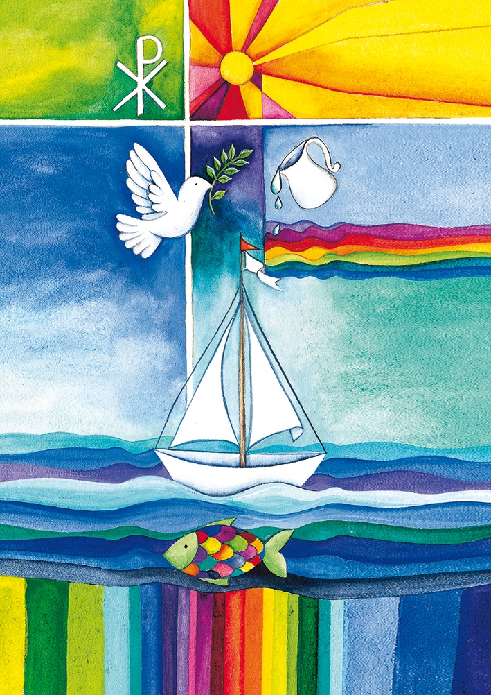 Karte zur Kommunion - Gottes Kinder & Segelboot