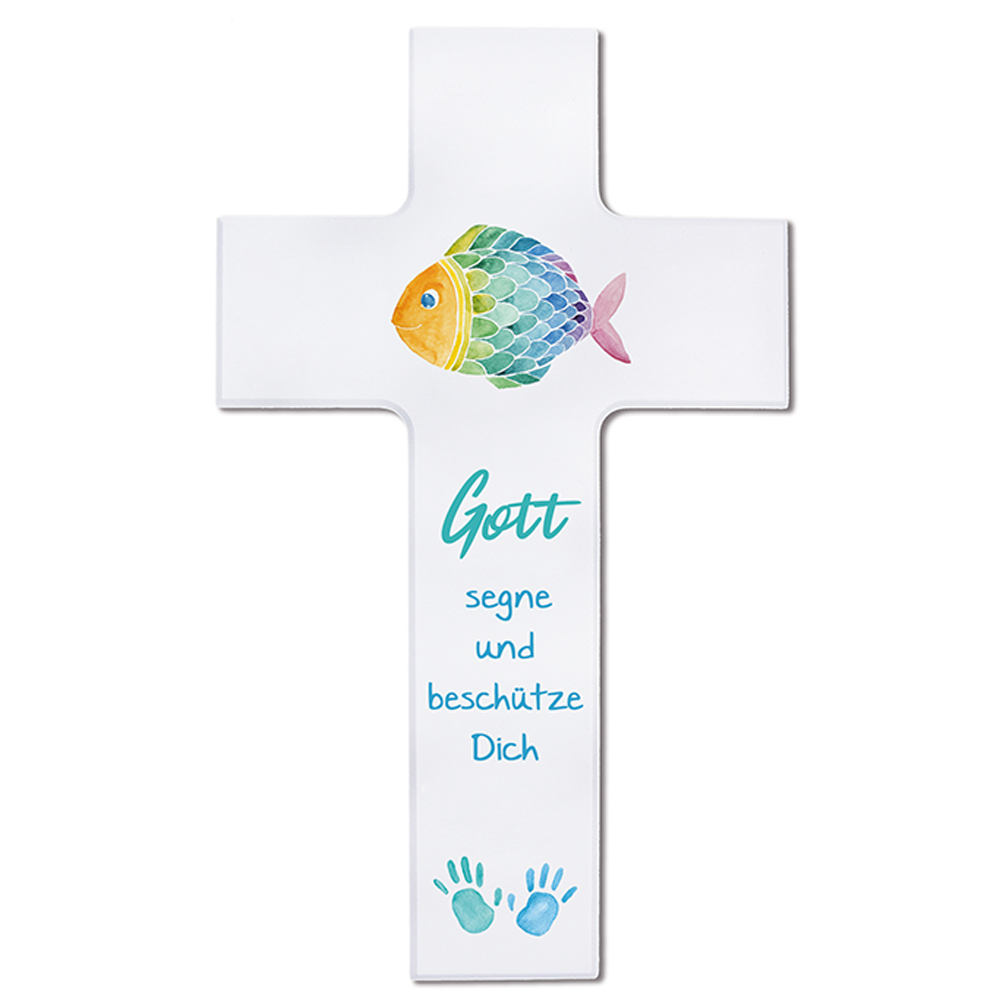 Kinderkreuz - Gott segne und beschütze dich & Fisch