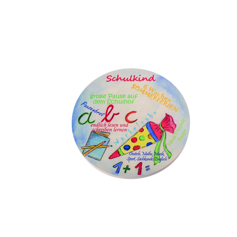 - Für eine persönliche Widmung, klebt auf der Rückseite, ein umweltfreundliches Etikett, aus Grasfasern.