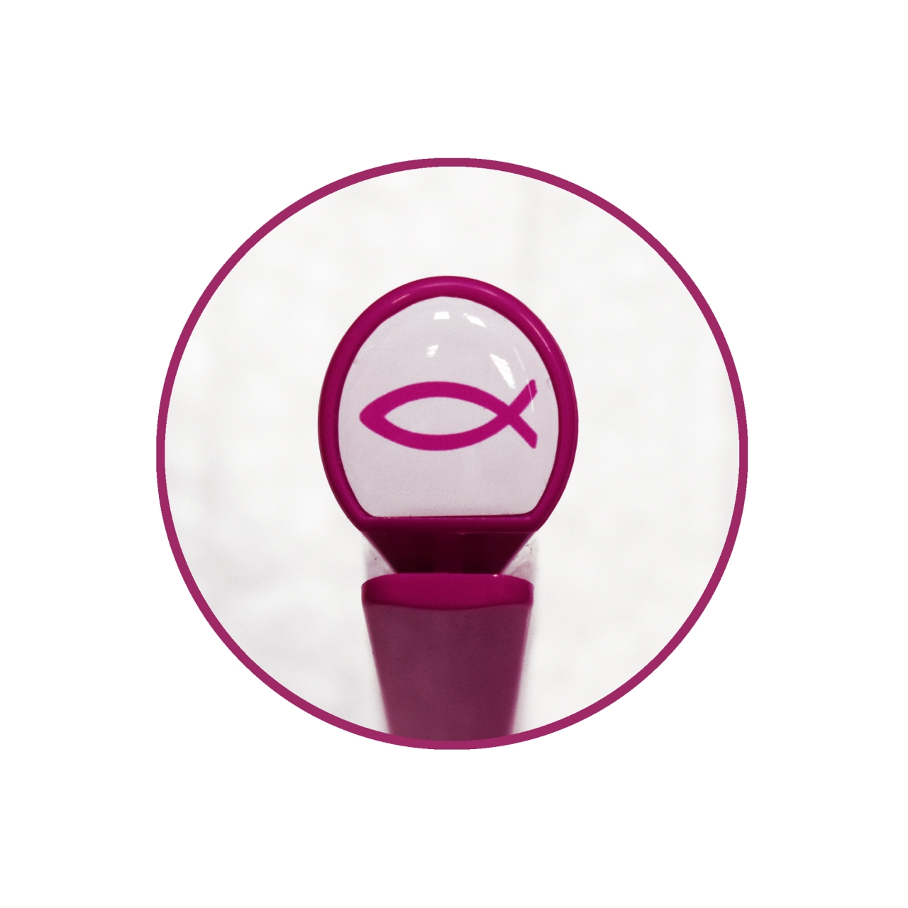 - Ichthys Emblem in gewölbter Oberfläche (Doming) auf der Stiftskappe