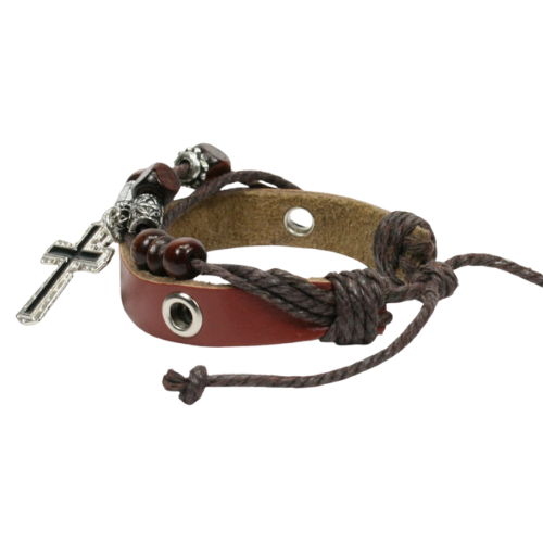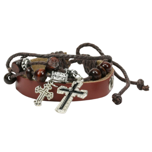 Produktinformationen "Leder Armband - Zierperlen & Metallkreuzen"