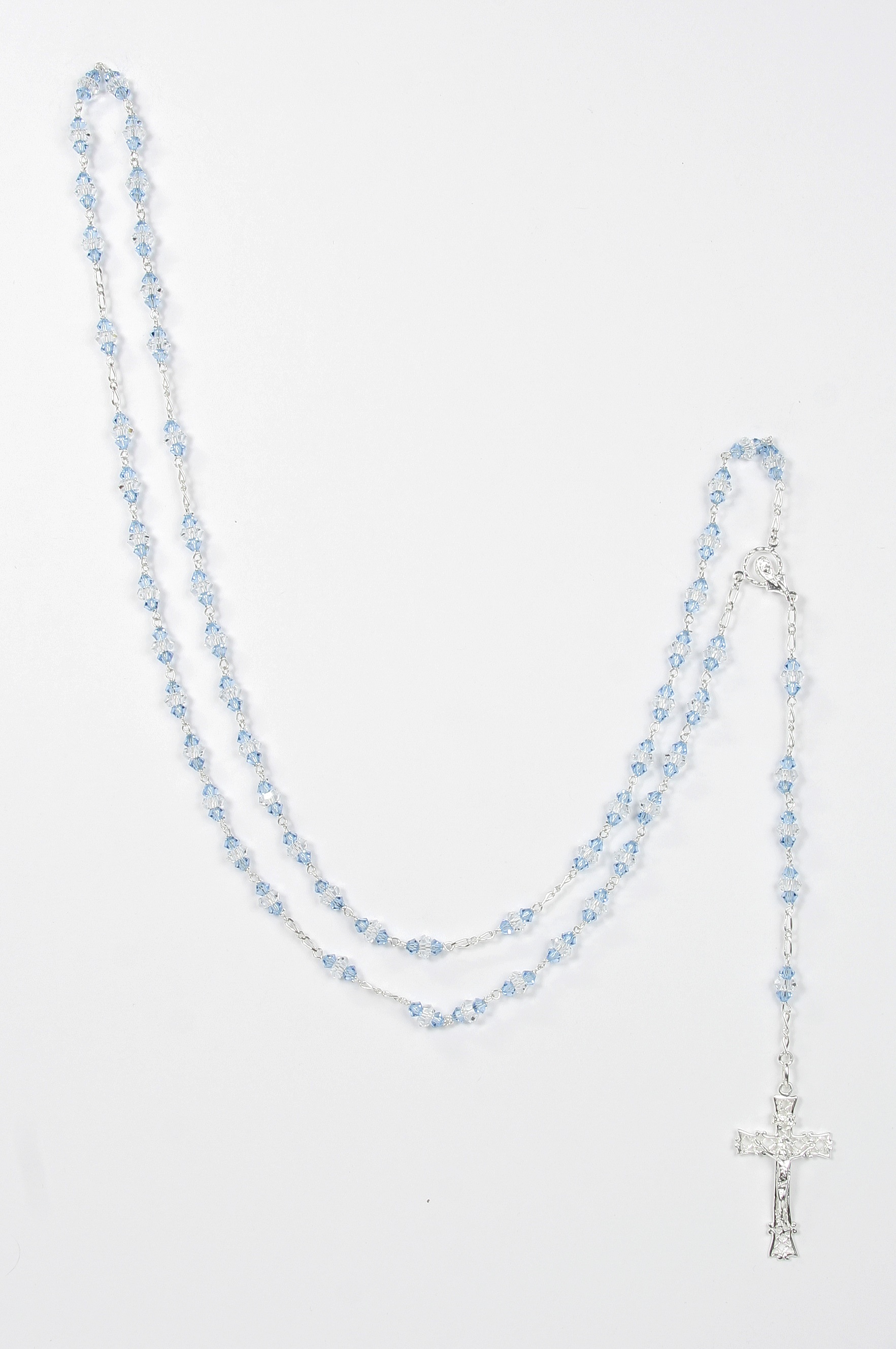 Rosenkranz - Hellblaue Kristall-Perle & Silber-Kreuz