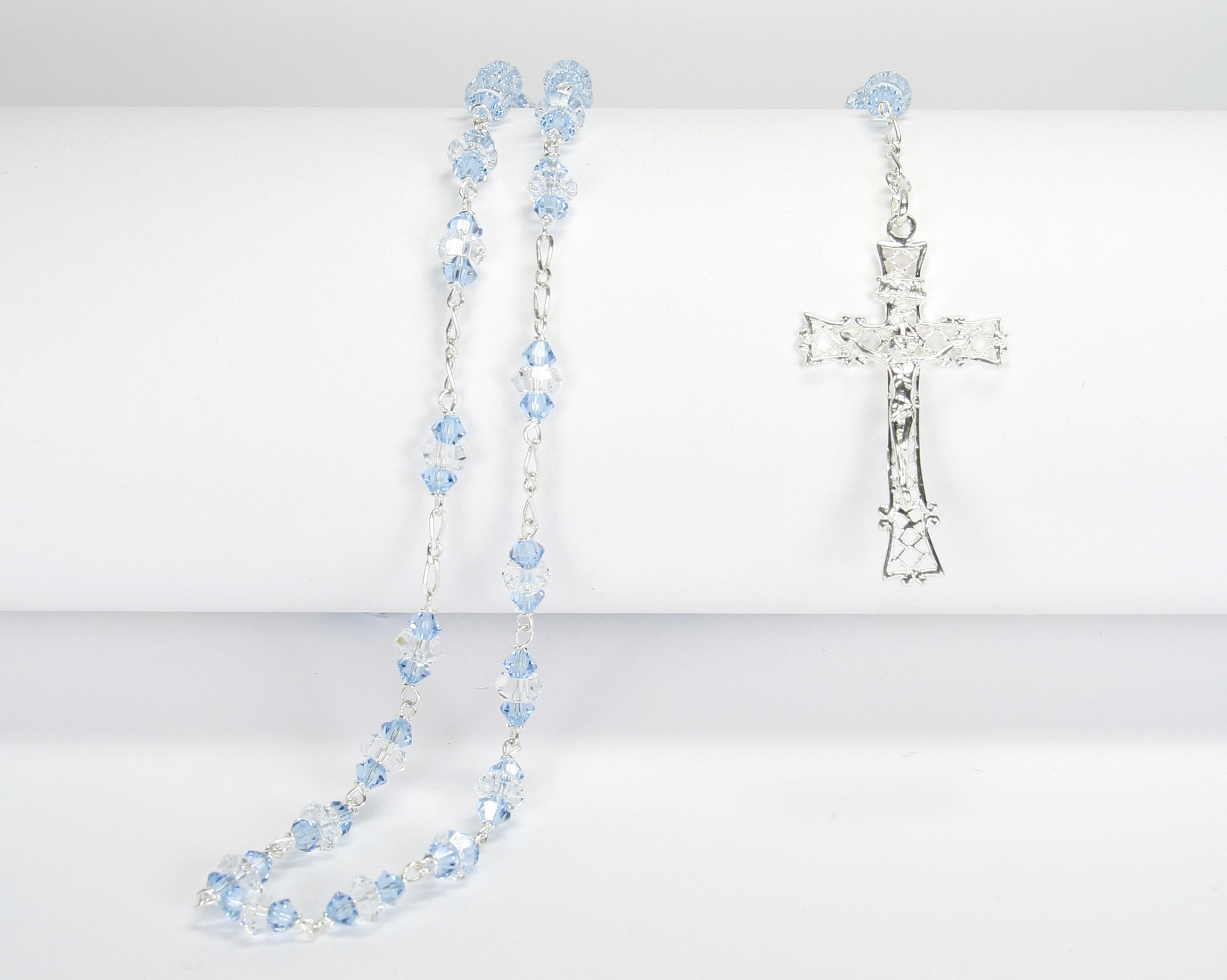 Produktinformationen "Rosenkranz - Hellblaue Kristall-Perle & Silber-Kreuz"