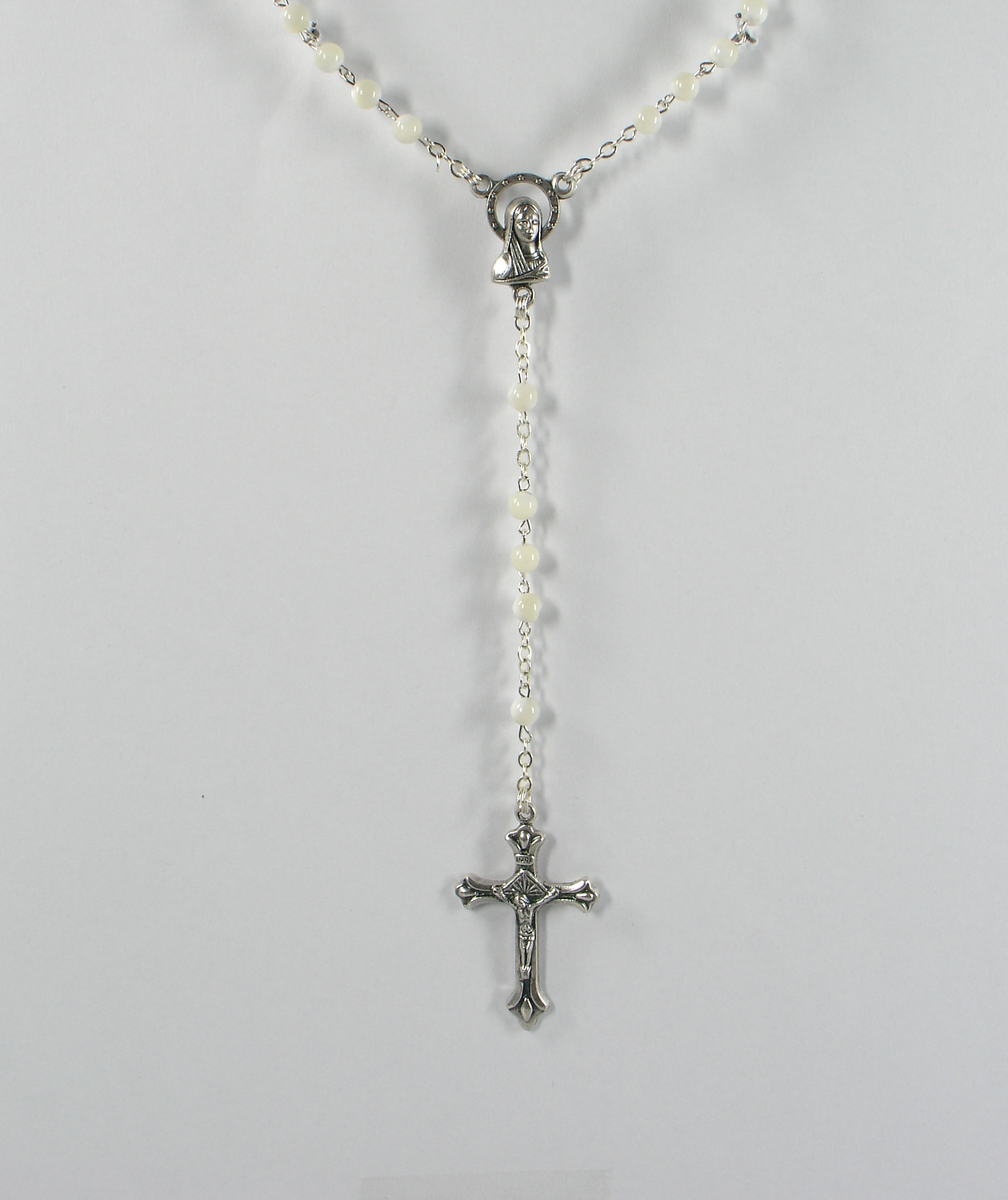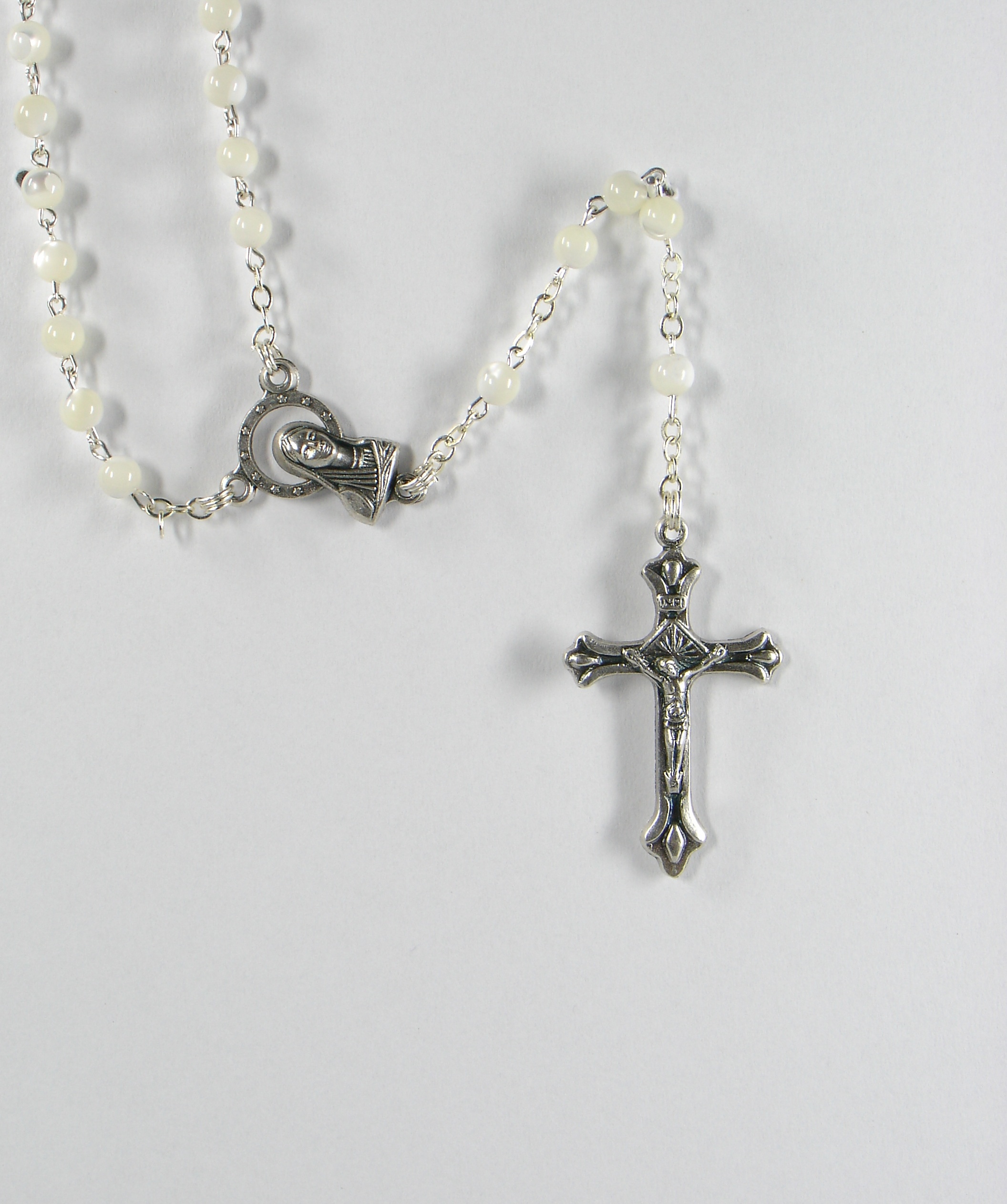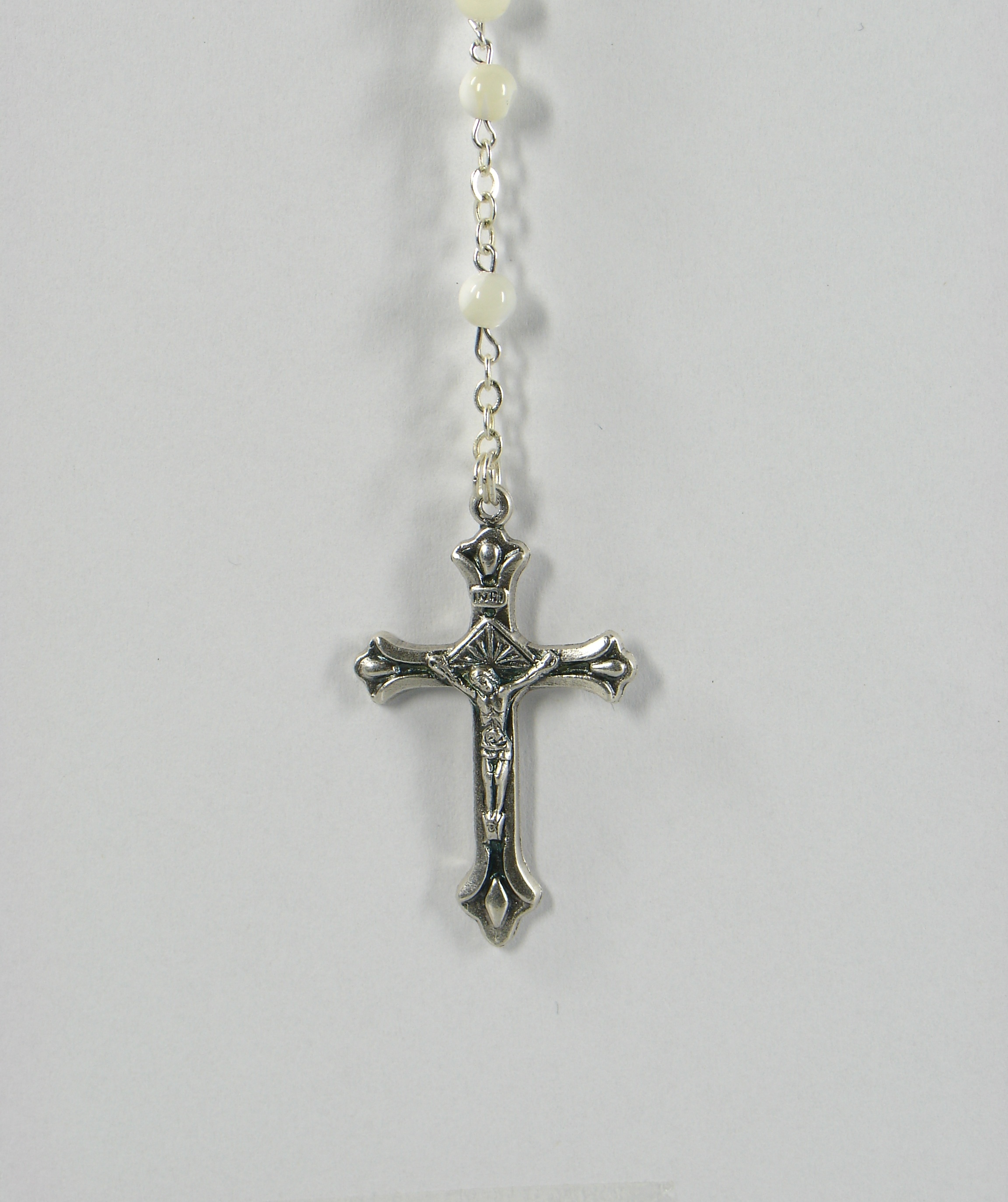 Rosenkranz - Perlmutt-Perle & Silberfarbenes Kreuz