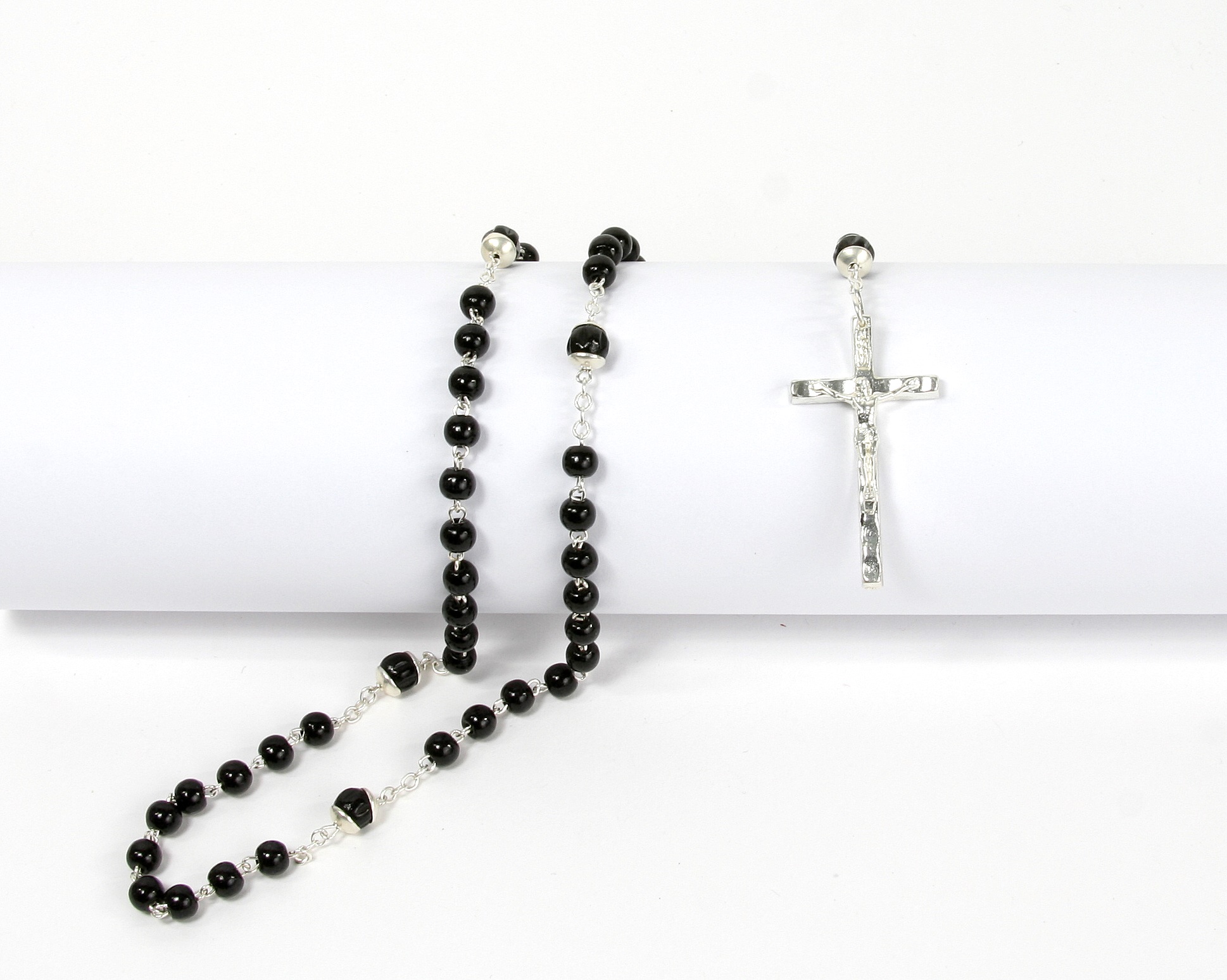 Produktinformationen "Rosenkranz - Schwarz verzierte Perle & Silberfarbenes Kreuz"