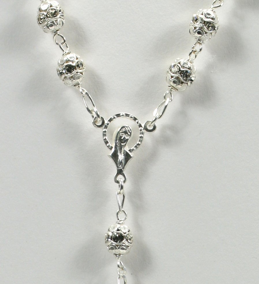 Rosenkranz - Silberne Perle & Kristall-Elemente