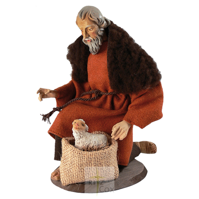 - Figur: Ruco-Krippe - Hirt kniend mit Heusack