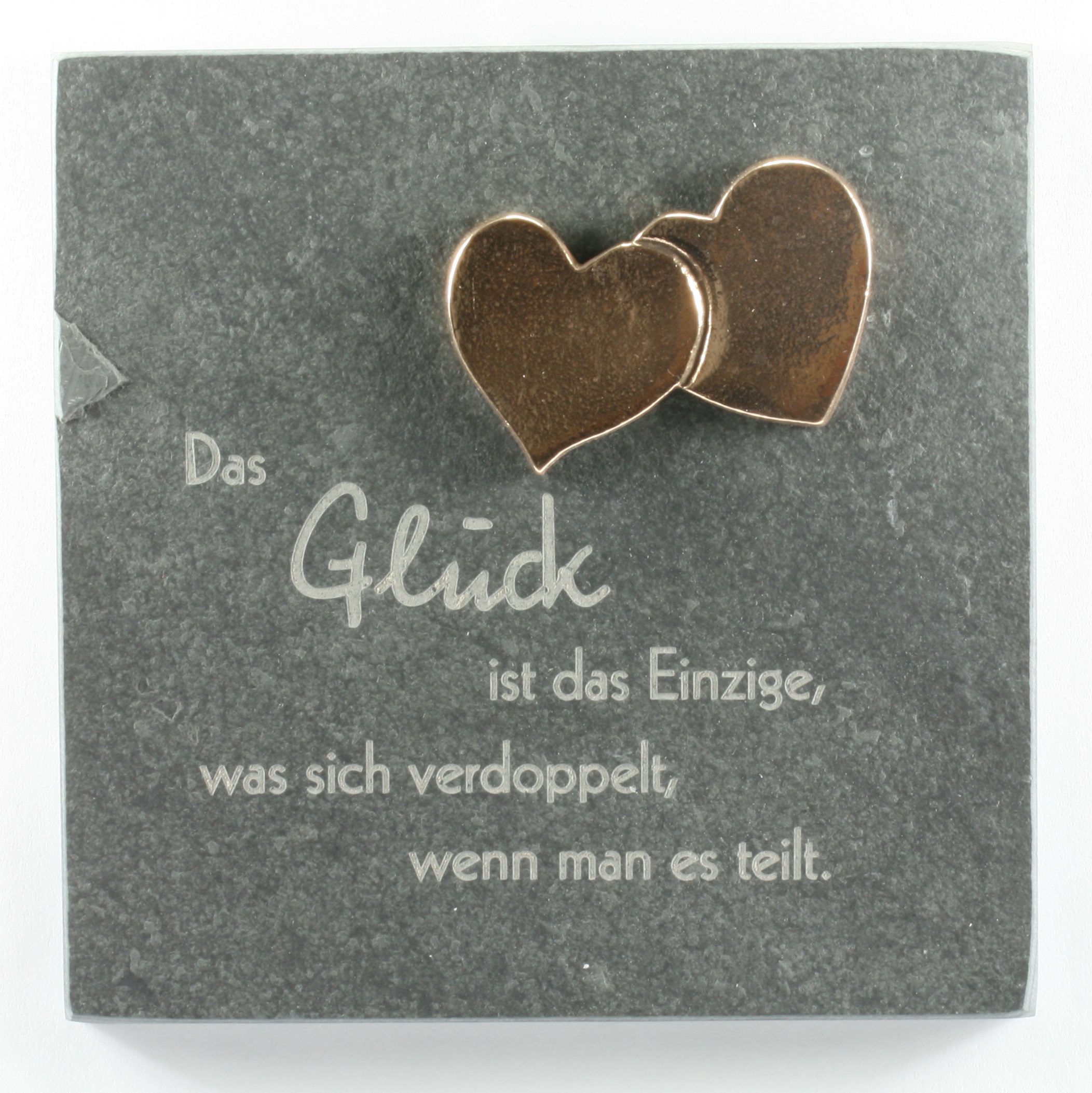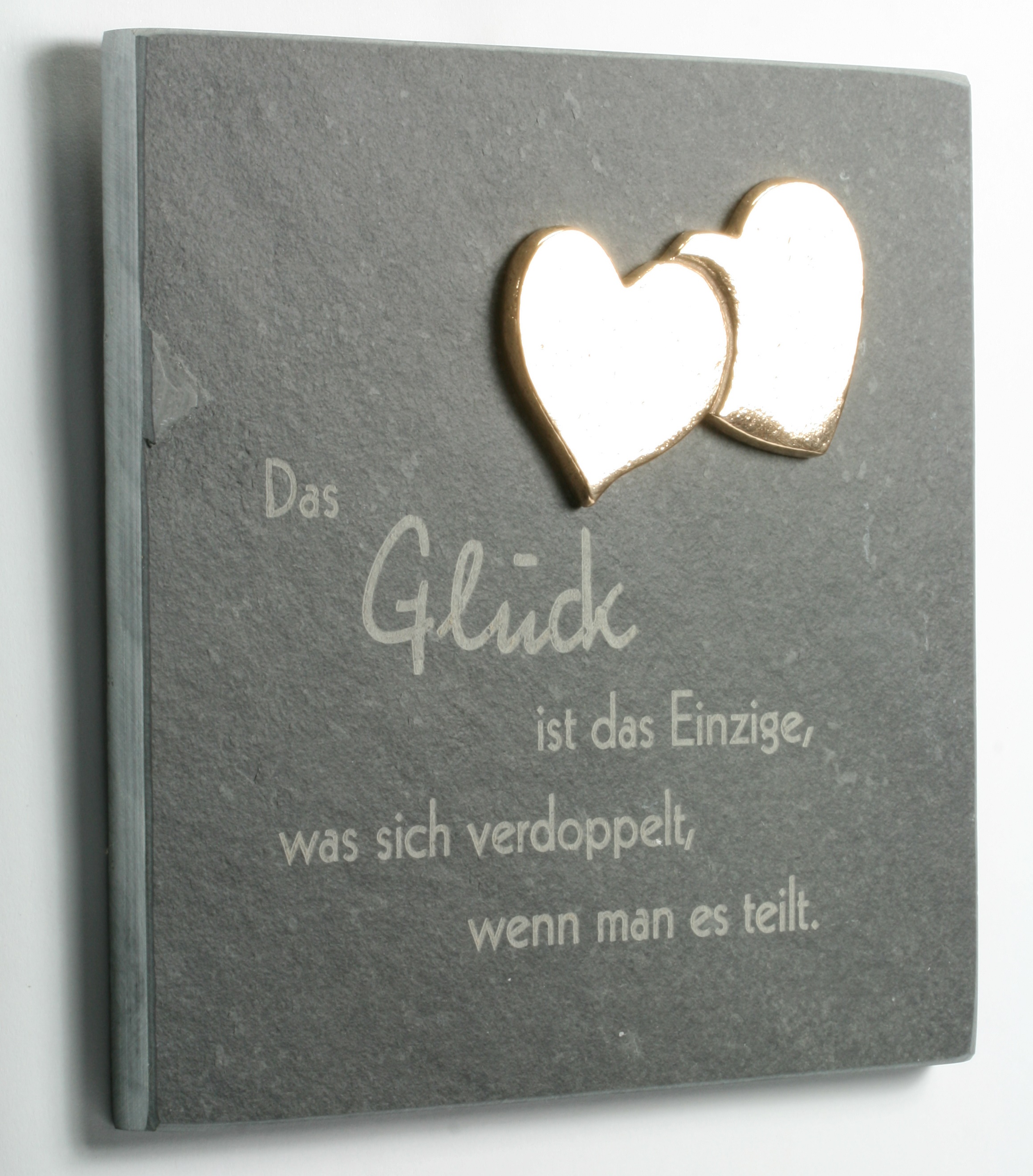 - Schiefertafel verbunden mit einem Emblem (Herzen) aus Bronze