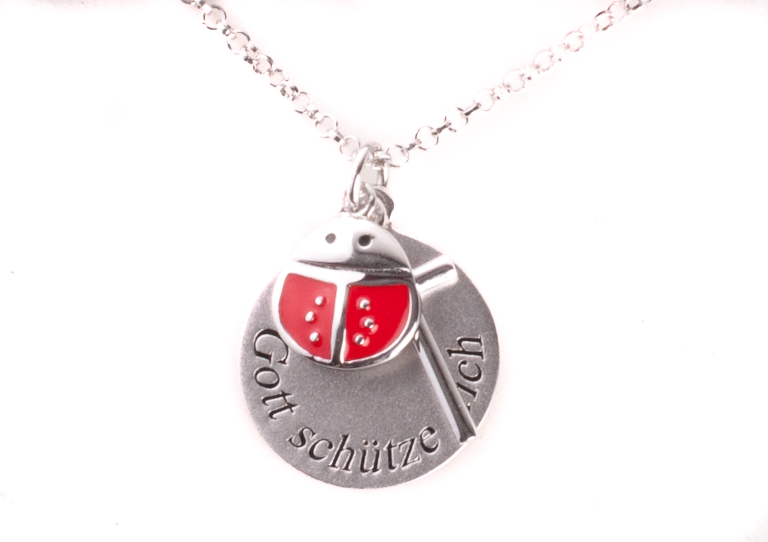 Produktinformationen "Silberkette - Marienkäfer & Gott schütze dich"