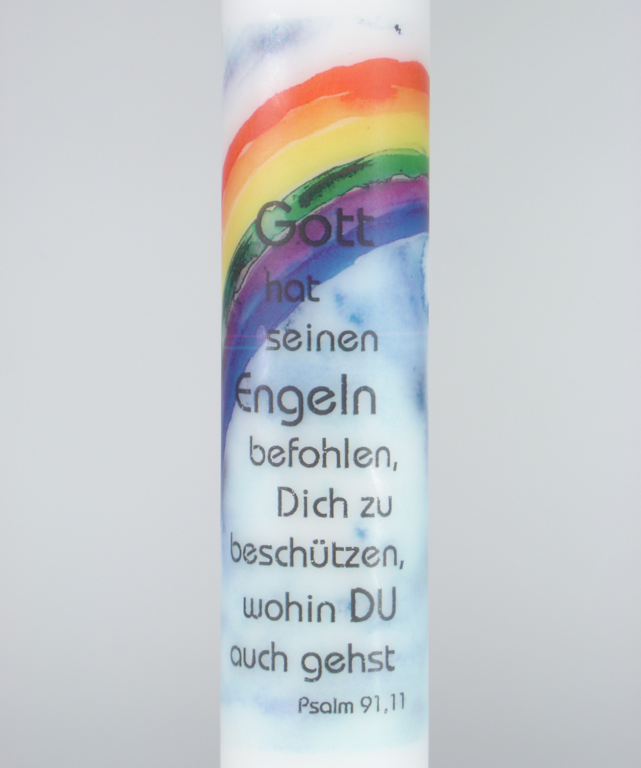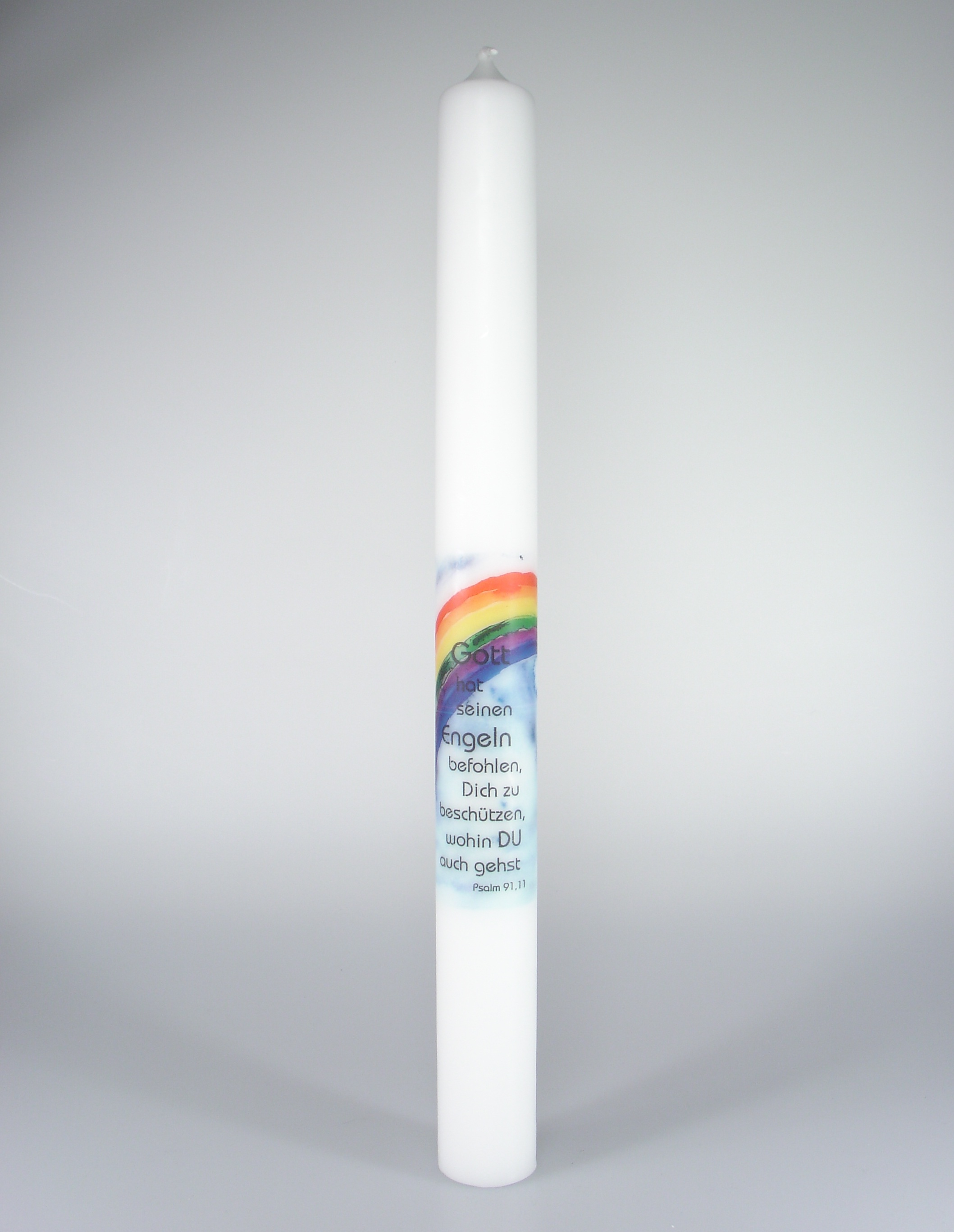 Produktinformationen "Taufkerze - Regenbogen & Spruch"
