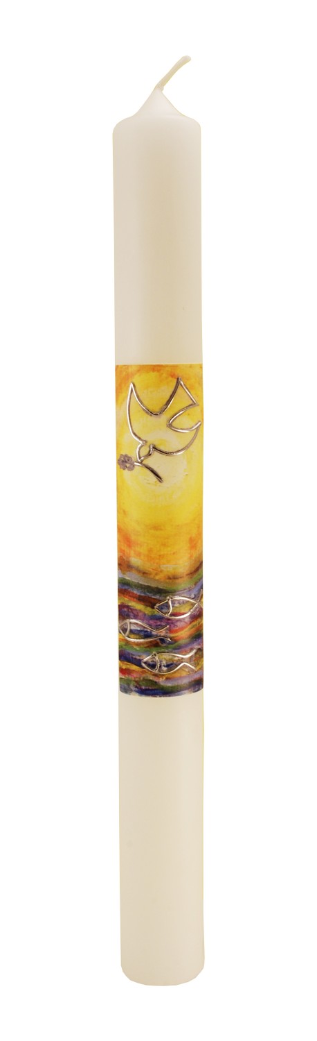 - Farben: Weiß mit farbigen und silbernen Wachsmotiven