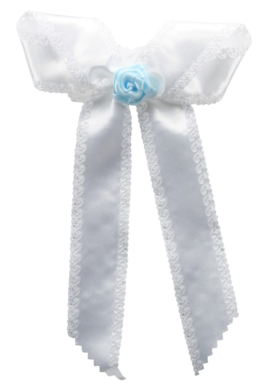 - Kerzenschleife - Weiss mit blauer Rose