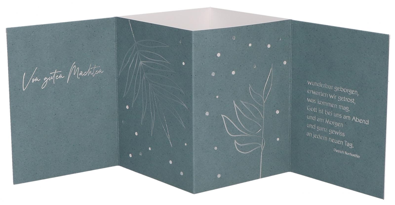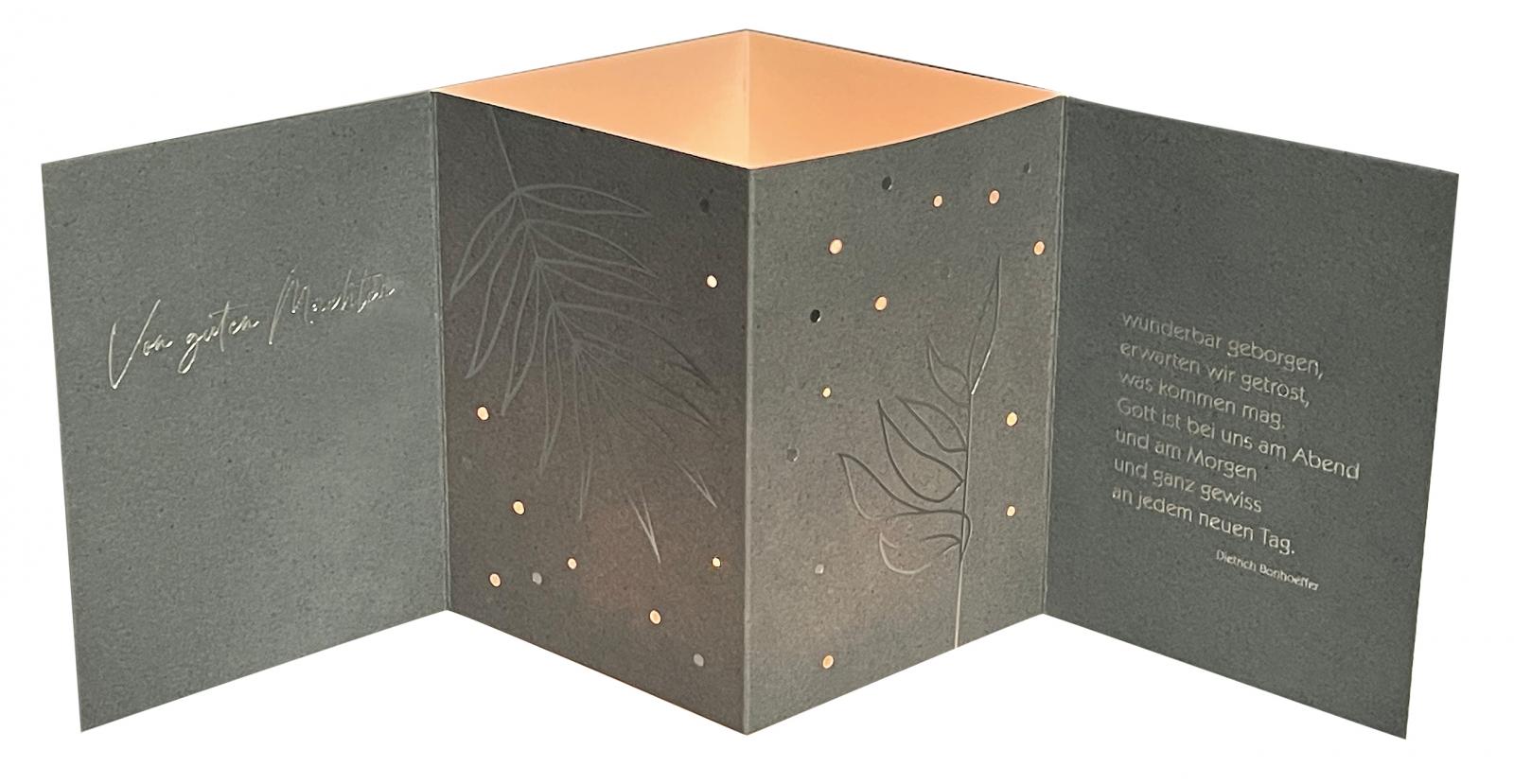 - Karte aufklappen und ein Teelicht(nicht im Lieferumfang enthalten) hineinstellen.