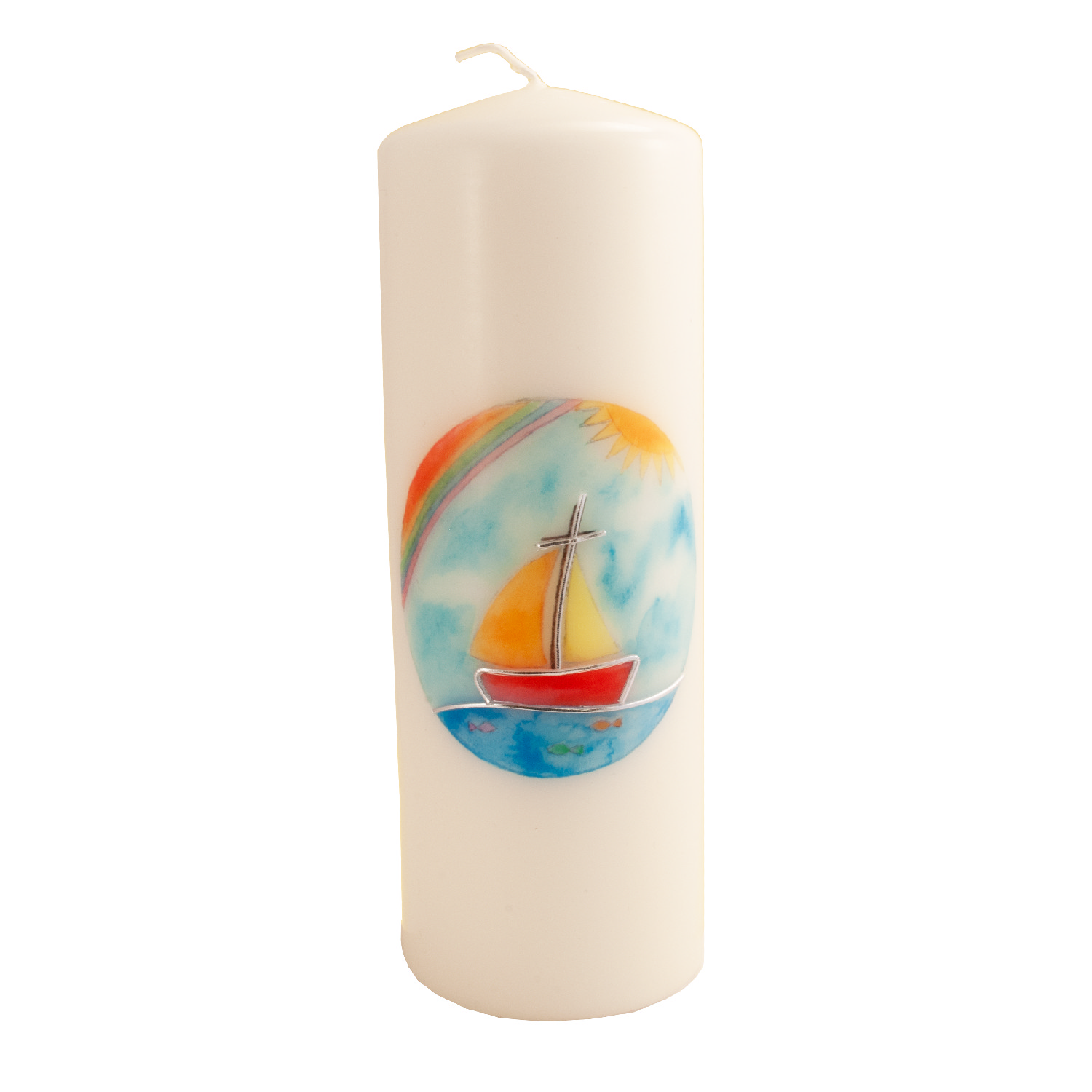 Produktinformationen "Tischkerze - Regenbogen & Schiff"