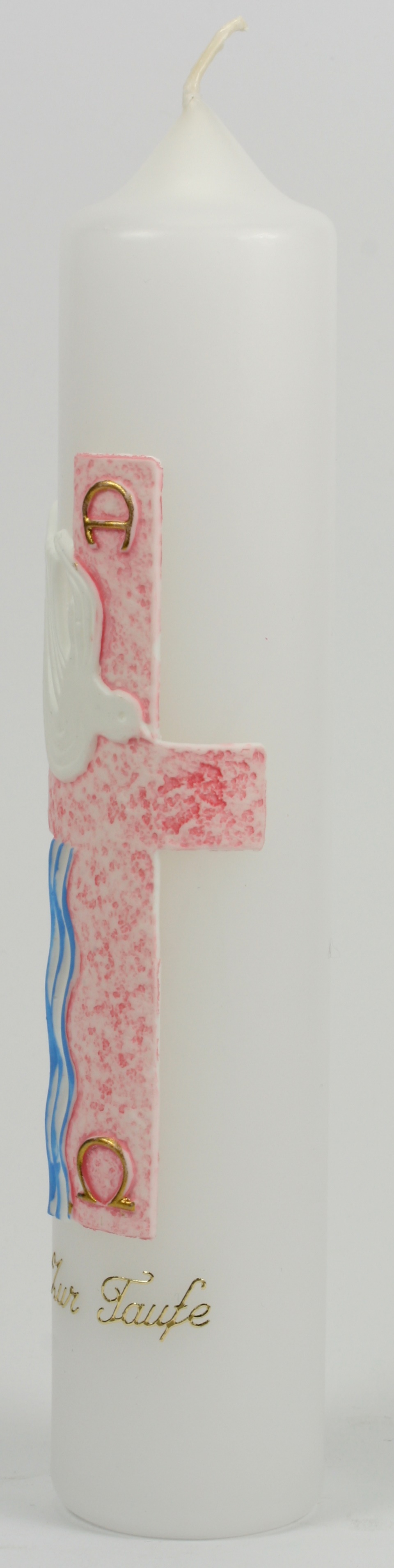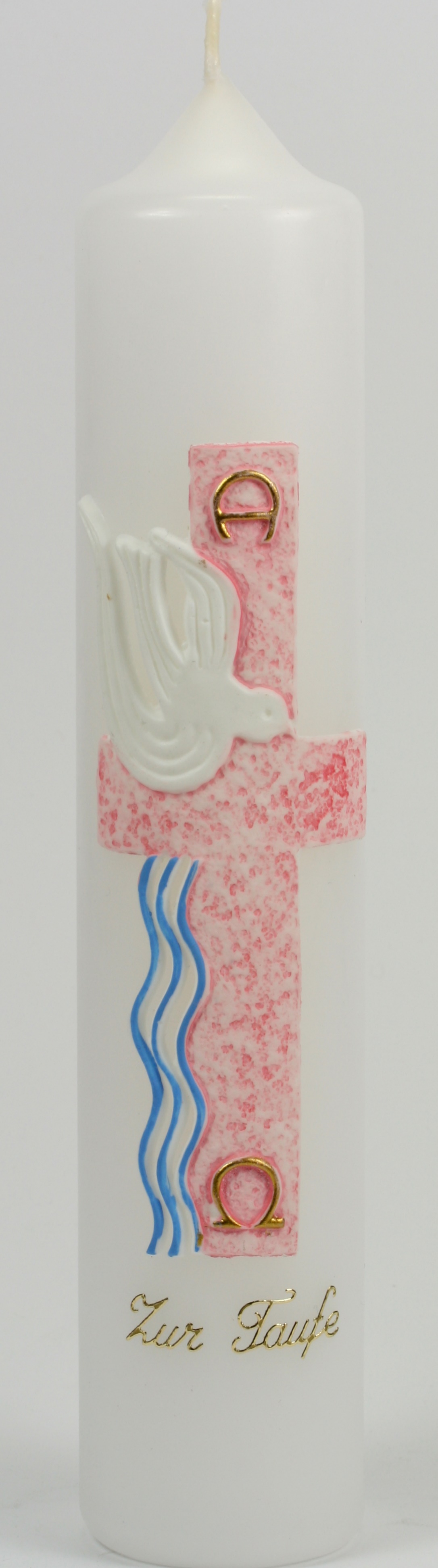 - Wachsmotiv: Kreuz, Taube, Wellen, Alpha und Omega