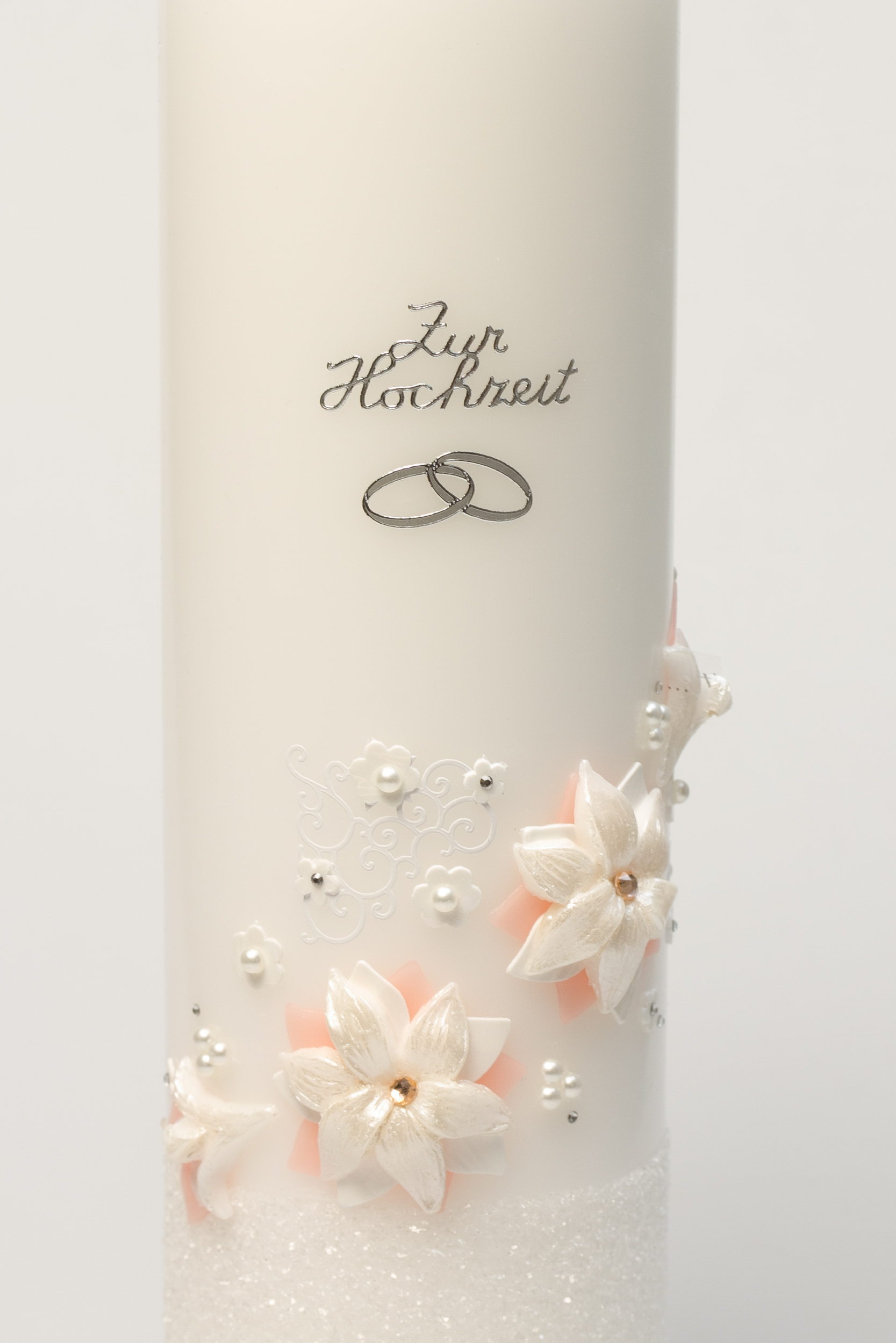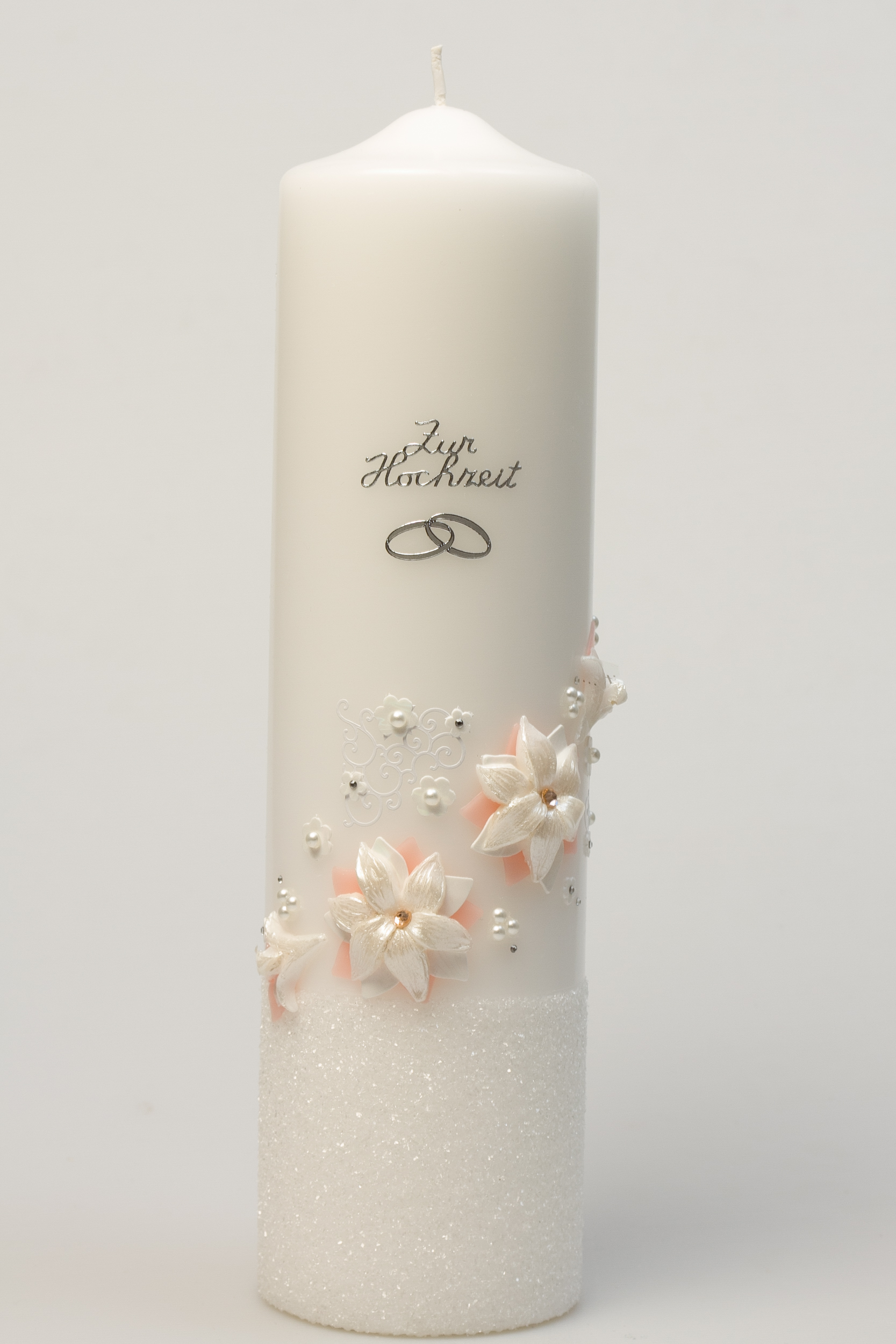 - Hochzeitskerze mit handgearbeiteter Wachsauflage