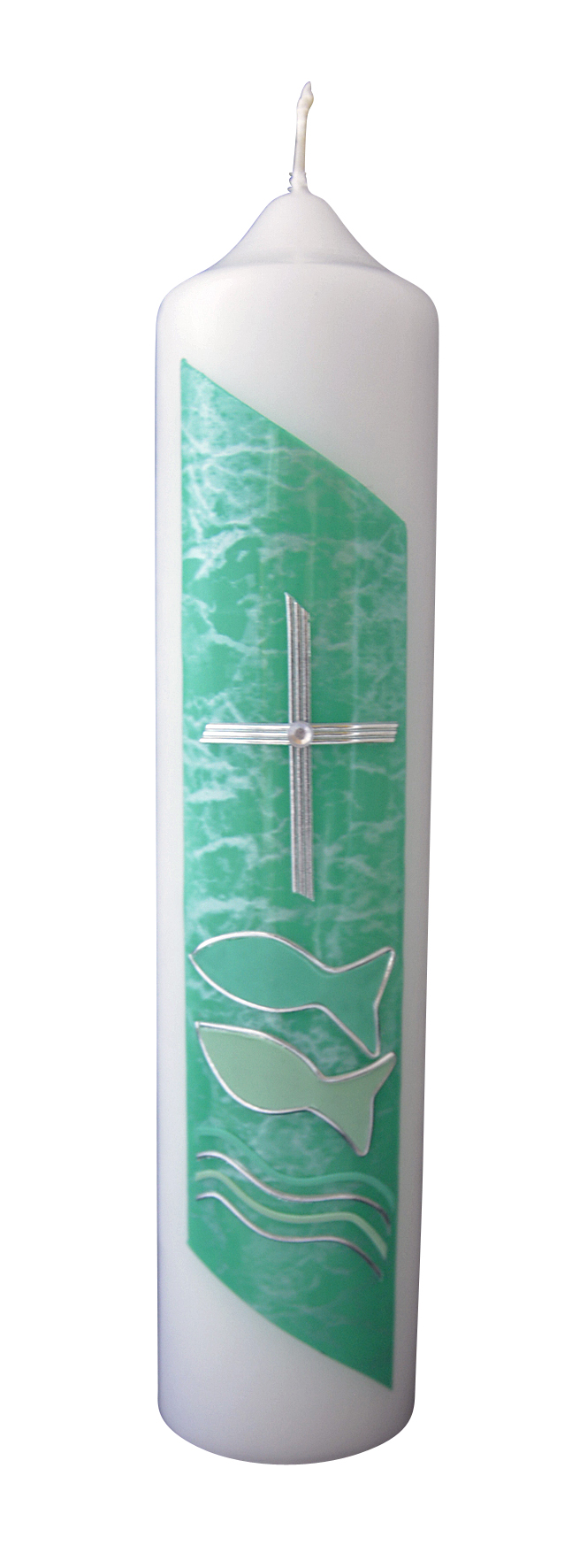 Produktinformationen "Tischkerze zur Taufe - Fische & Türkis"