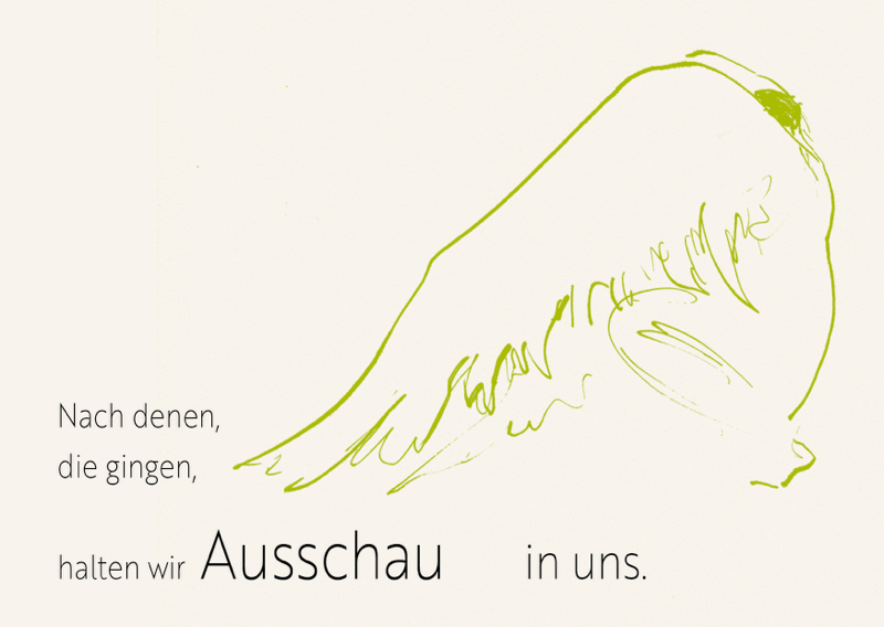 - Text: "Nach denen, die gingen, halten wir Ausschau in uns"
