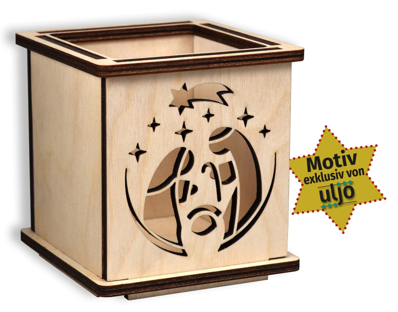 - Verarbeitung: mit ausgesägtem Krippemotiv